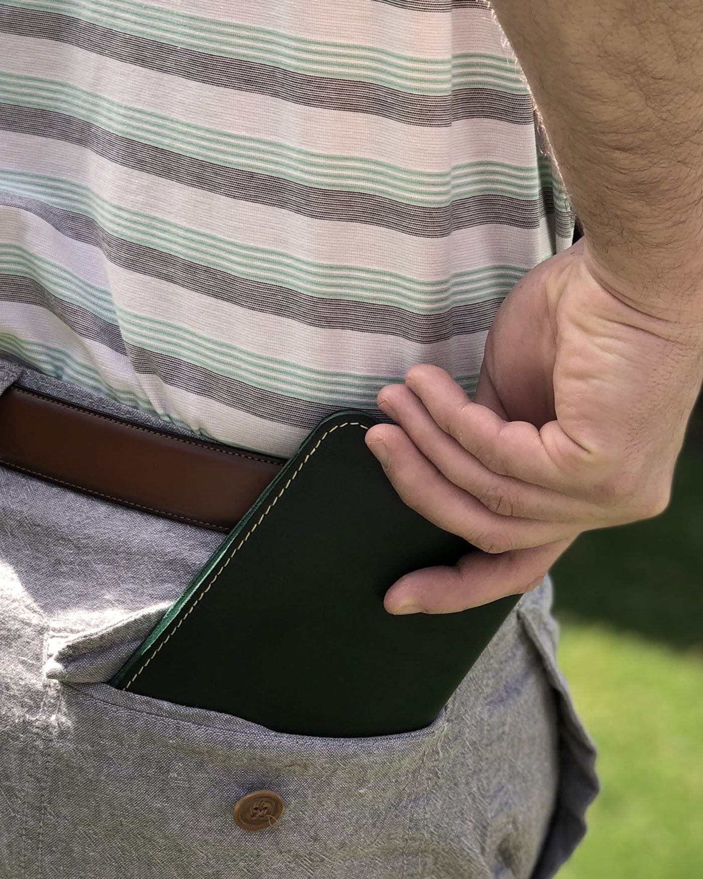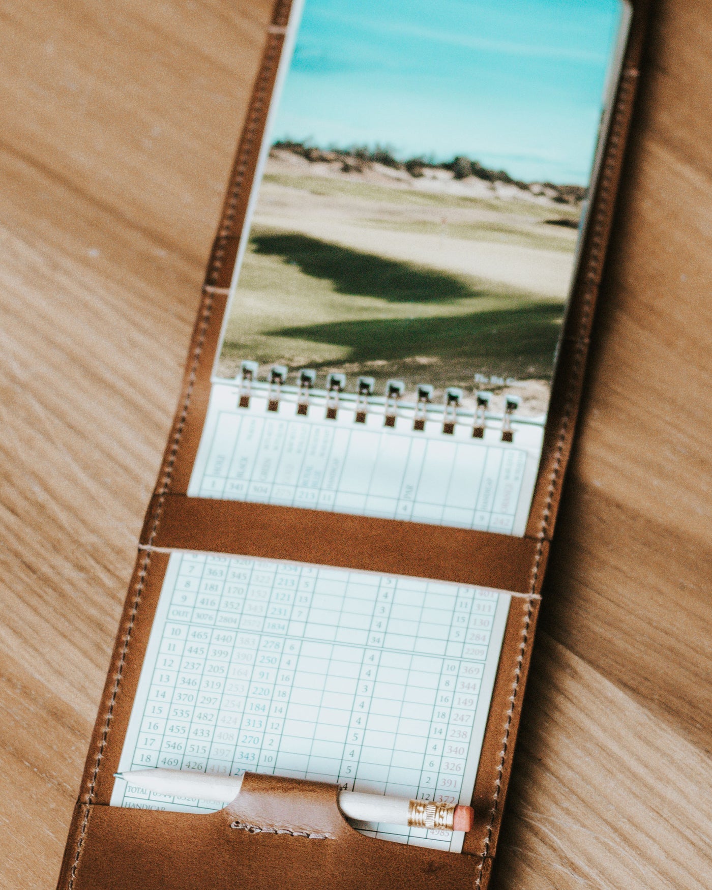A yardage book cover should protect your notes, fit cleanly in your hand or back pocket, and hold up season after season. Full-grain leather starts structured and softens with use, developing character based on how it’s carried. It’s built to be used, not just owned — and it should feel trusted every time you reach for it.